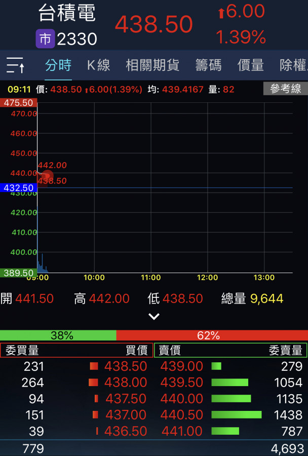 第一次買台積電,膽小只敢買350股,但帳面上已經獲利了,太開心了,