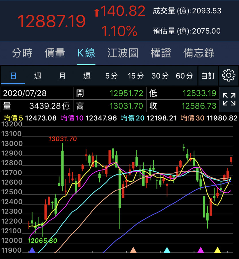 台股大盤就會破 7/28 的 13031 歷史價位!