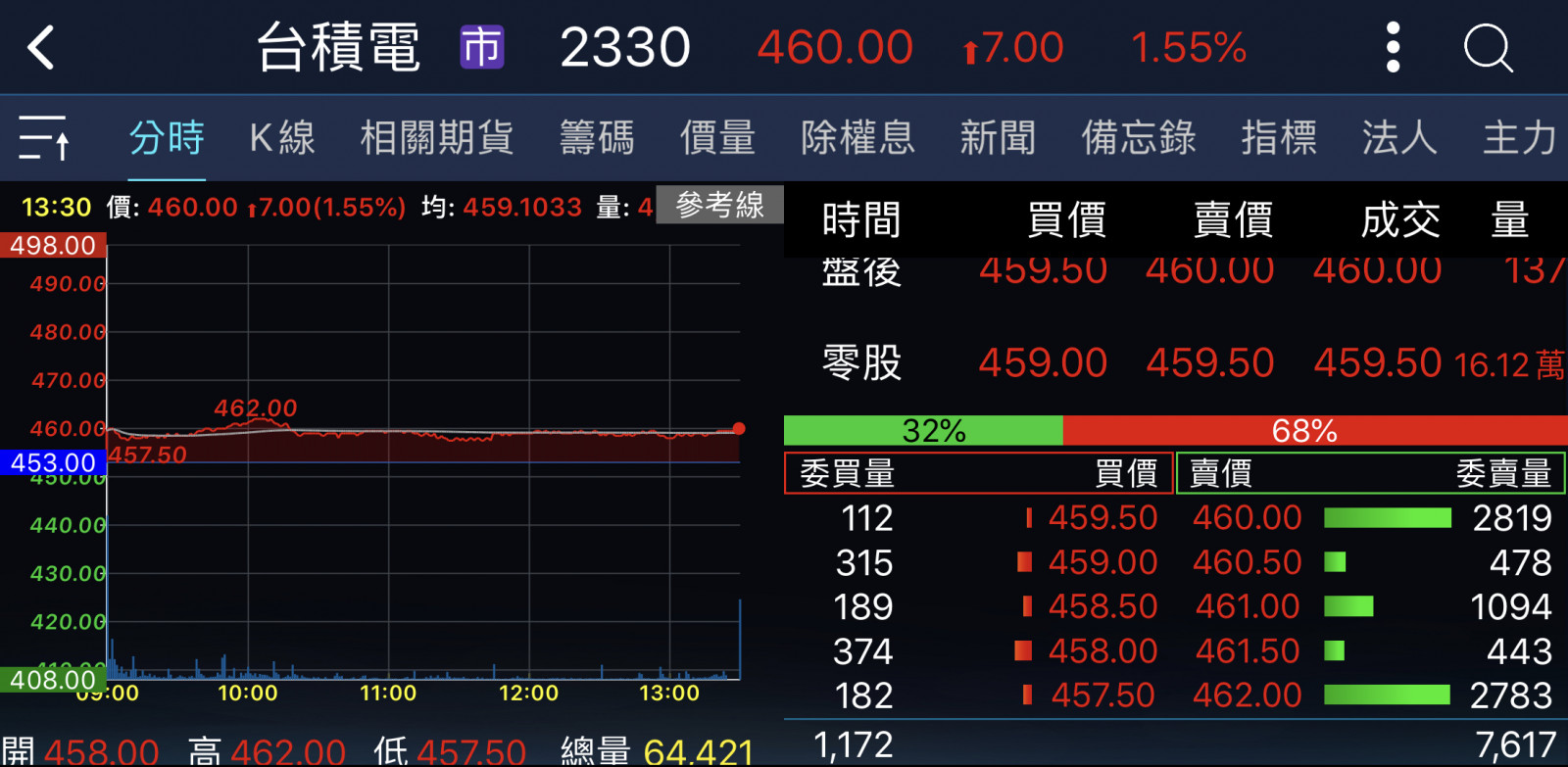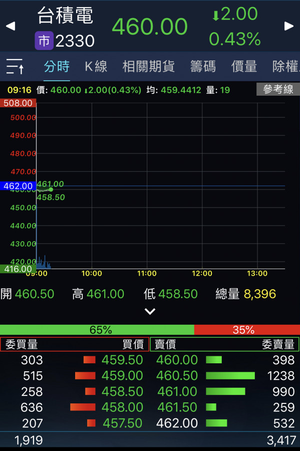 看您掛460,460漲了再認錯買回,要很有勇氣捏,往上空間不大,往下是粉恐怖的😰