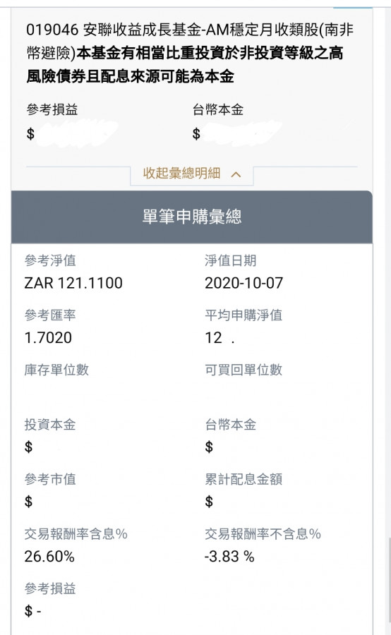 我基金、股票、黃金都有,目前反而是基金我覺得比較滿意的(我目前還是持續有用基金買進基金,包含南非幣)