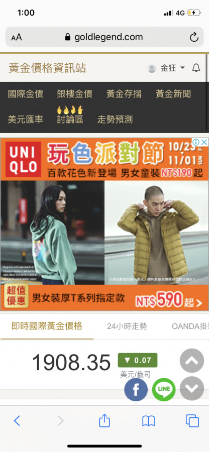 回覆 金狂:今天早上9:45台幣計價1767匯率國際...