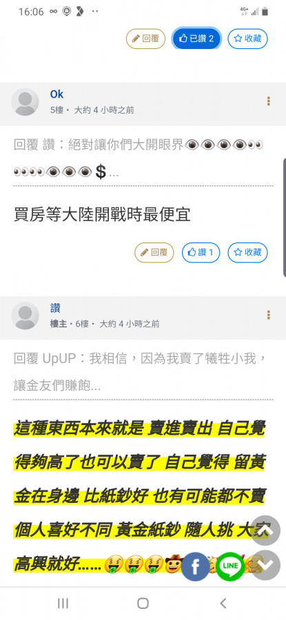 回覆 UpUP:我相信,因為我賣了犧牲小我,讓金友們賺飽...