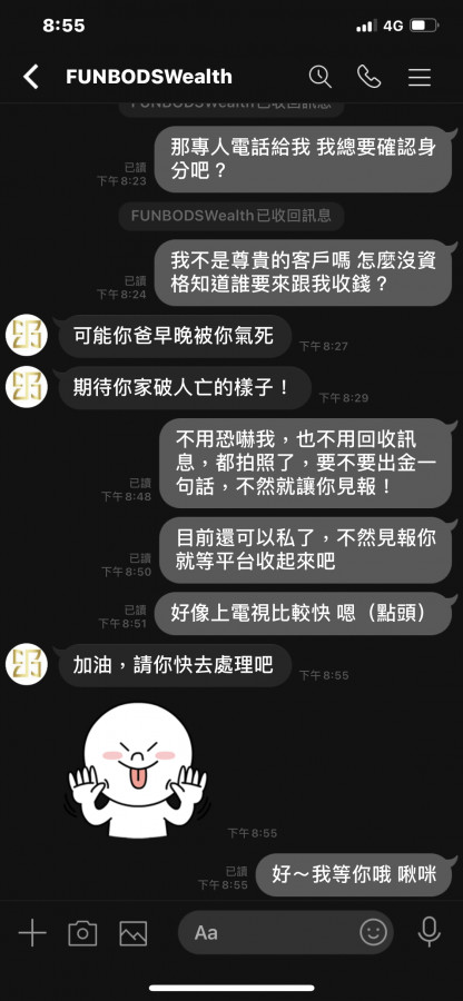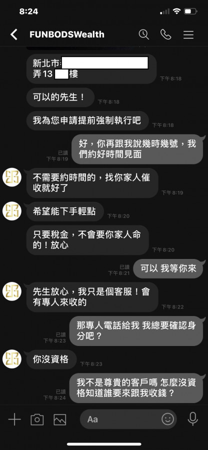 回覆 kjuh21:我已備案,謝謝大家,客服傳我有涉法到洗錢...
