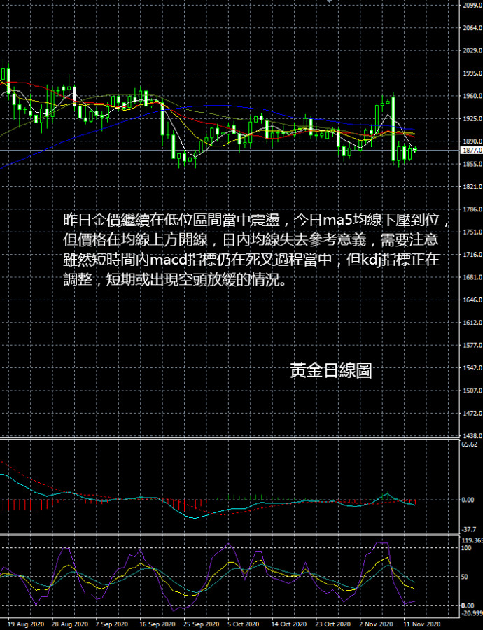 本周金價整體來說是走弱的,這和市場的避險降溫有著密切聯繫,一方面疫苗不斷傳來利好消息,另一方面經濟數據也出現改善,加上美國大選遲遲唯有落實,對於黃金上漲的條件暫時放緩,而接下來市場還會持續關注美國動態。