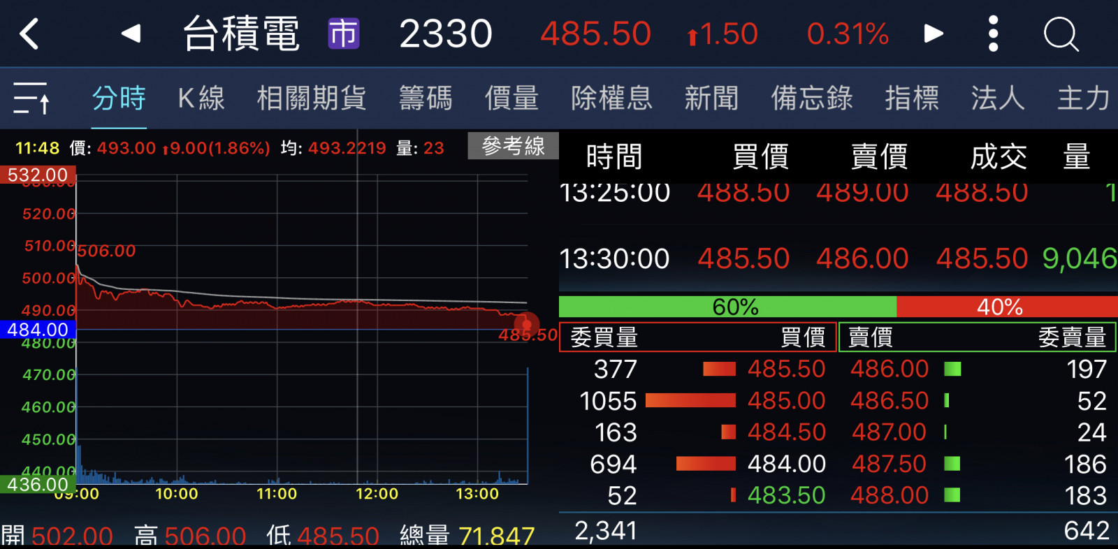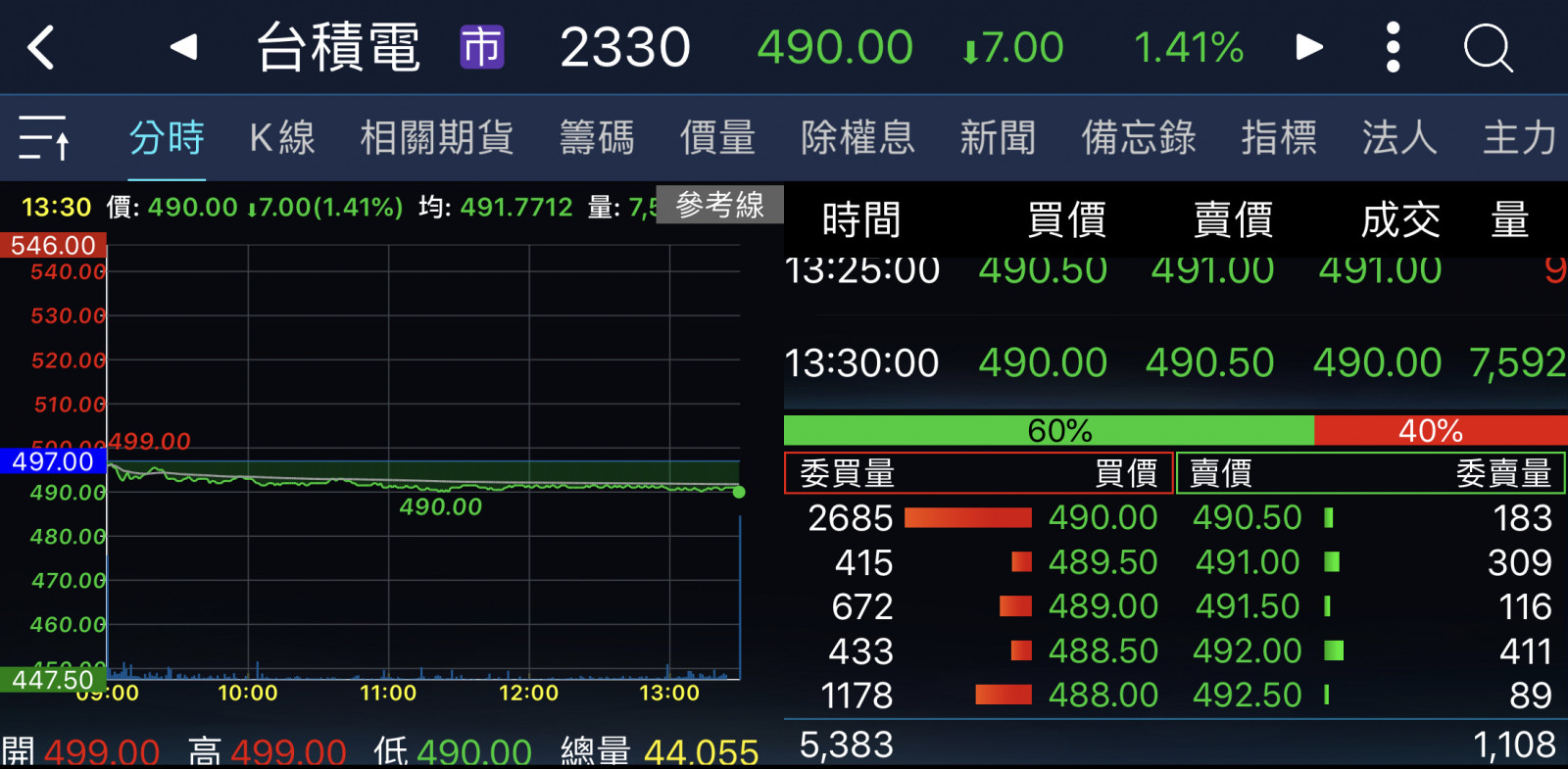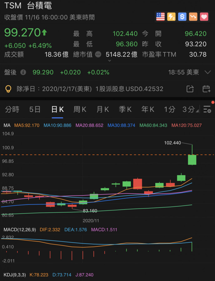 回覆 嗨爪主席:美股台積電ADR 現在盤前價是跌的……晚...
