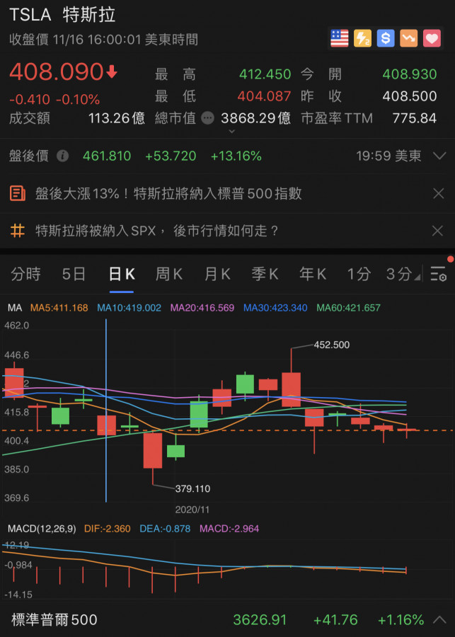 回覆 嗨爪主席:特斯拉 被納入標普500盤前大漲13%雖...