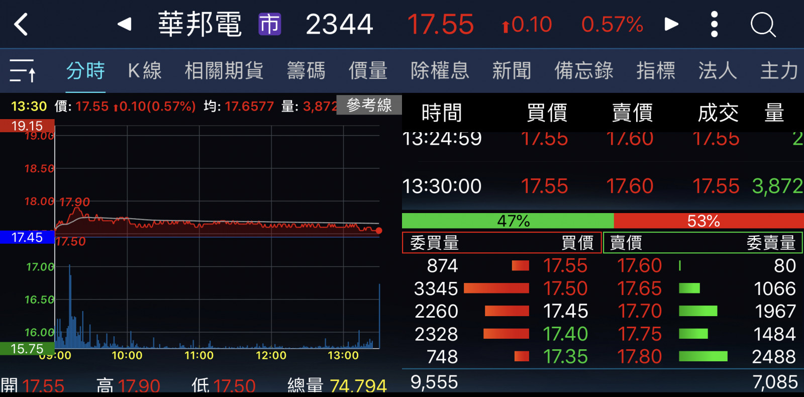 回覆 Mark33:華邦電現在賣的比買的多三倍保重了...