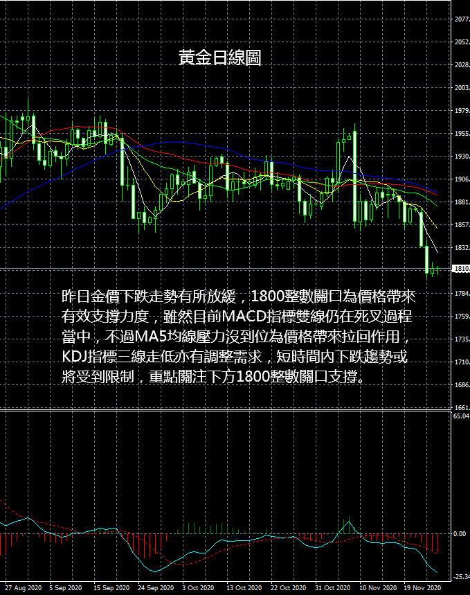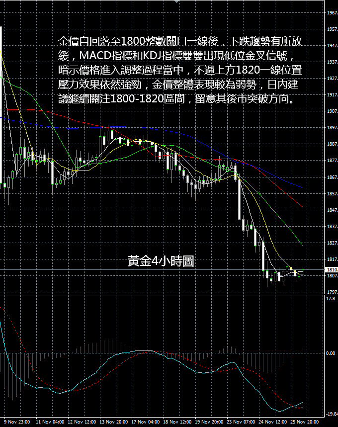 由於明天感恩節的緣故,今晚的經濟數據可謂相當驚人,而且都是比較重要的,屆時的影響力度可能較大,要留意金價的運行節奏,而且周初大幅下滑後,也要關注是否有多頭回補的跡象。