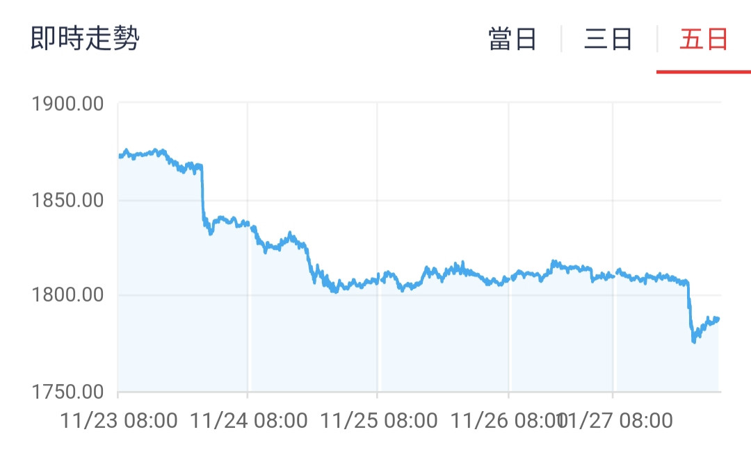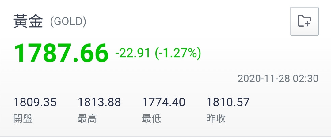 回覆 黃金印象:🔺️金金開啟跌勢18天11/28收盤價格...