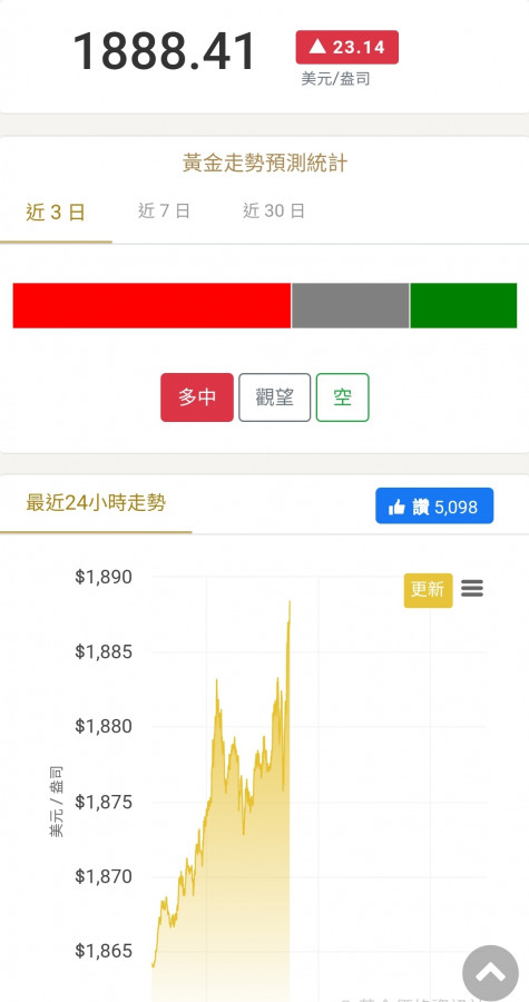 回覆 黃金印象:🔺️更高囉🎉🎉🎉希望今晚直接貫穿1900...