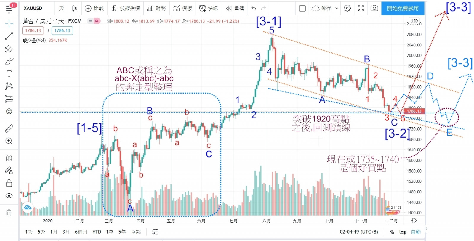 整個ABC是一個走3-3-5波的平台型整理(雖然不是很"平台"),