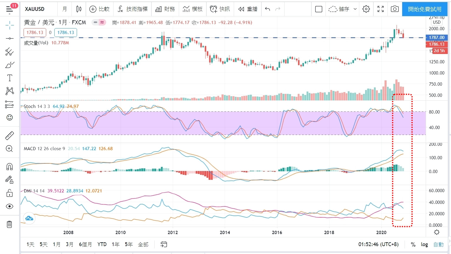 月線指標表示(紅色方框),