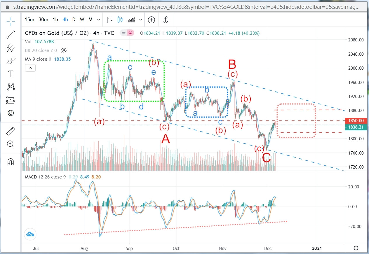 若是走A-B-C,那麼C只剩小4反彈及小5下跌,