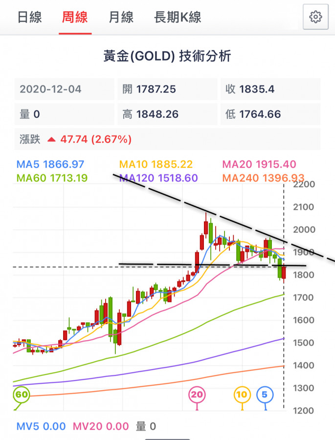 所以如果要更細分析就是日線=20日要站上120日,這是以單純均線來看才有可能扭轉局勢。