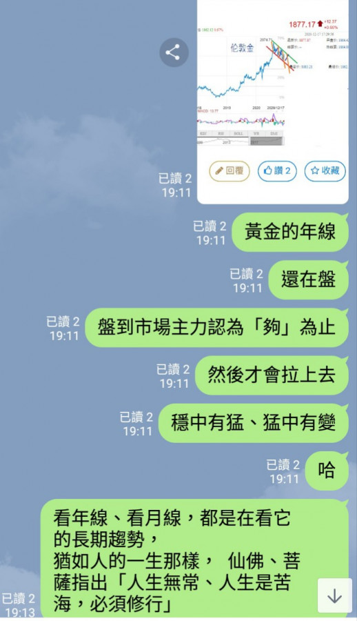 回覆 求敗:這三天黃金反彈,月線(20ma)扣抵低值...