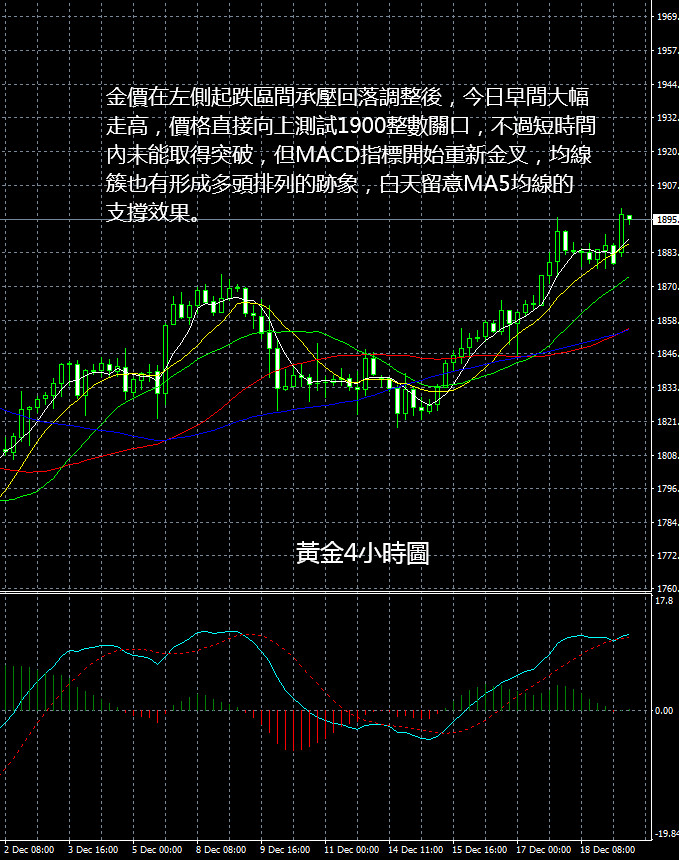 今日數據非常稀少,由於本周已經開始進入聖誕假期,所以市場消息面會相對比較平靜一些,不過不代表金價會波動變小,因為近期的節奏還是比較快的,所以不排除還是會維持大幅的運行空間。