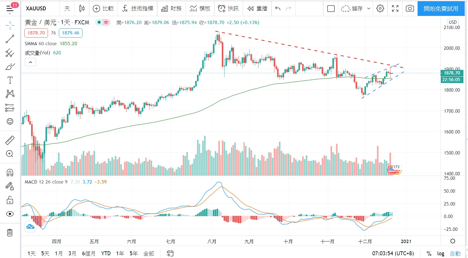 圖上的綠色線60日smma是一個觀察重點,