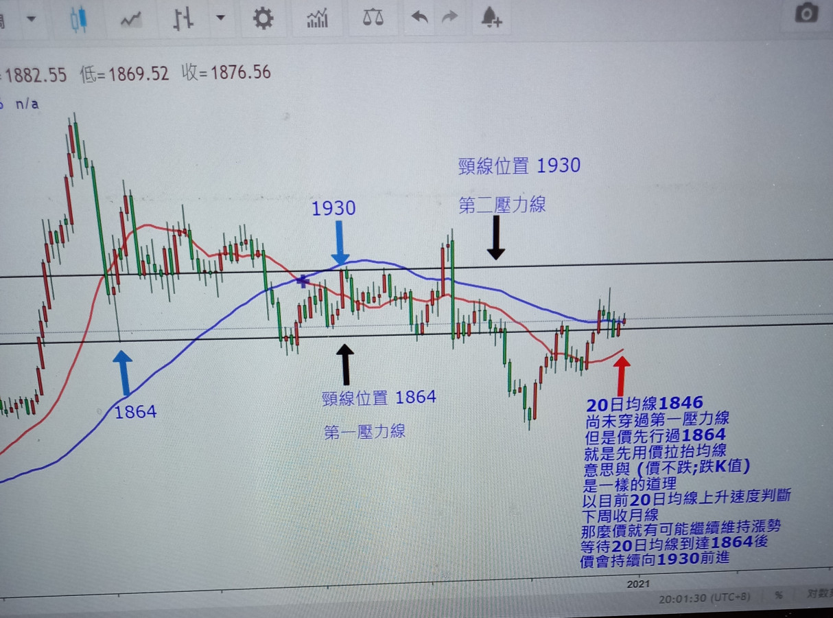 (1)20日均線是否可以穿過60日均線,這關係到(價不跌;跌K值)這修正作用,如果是那麼就有機會2021/01上半旬見2000。