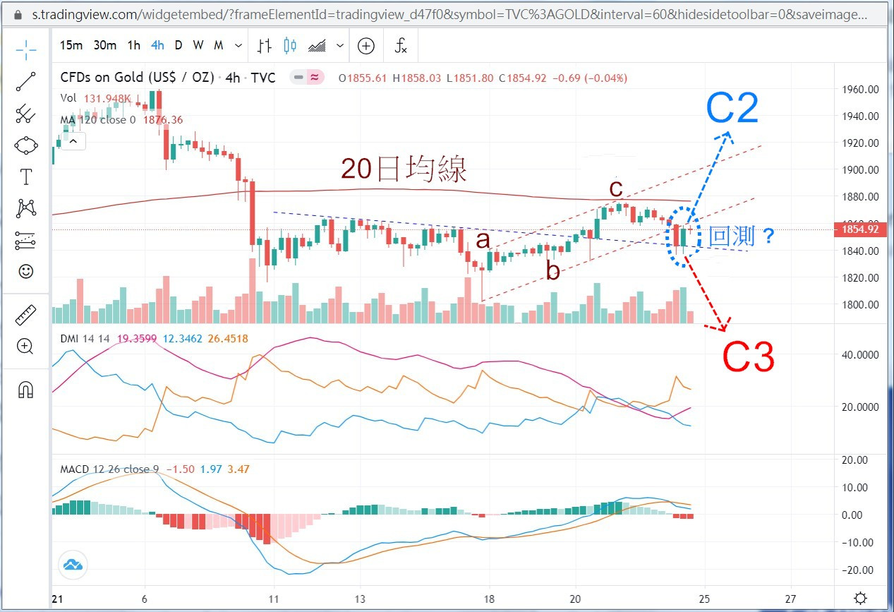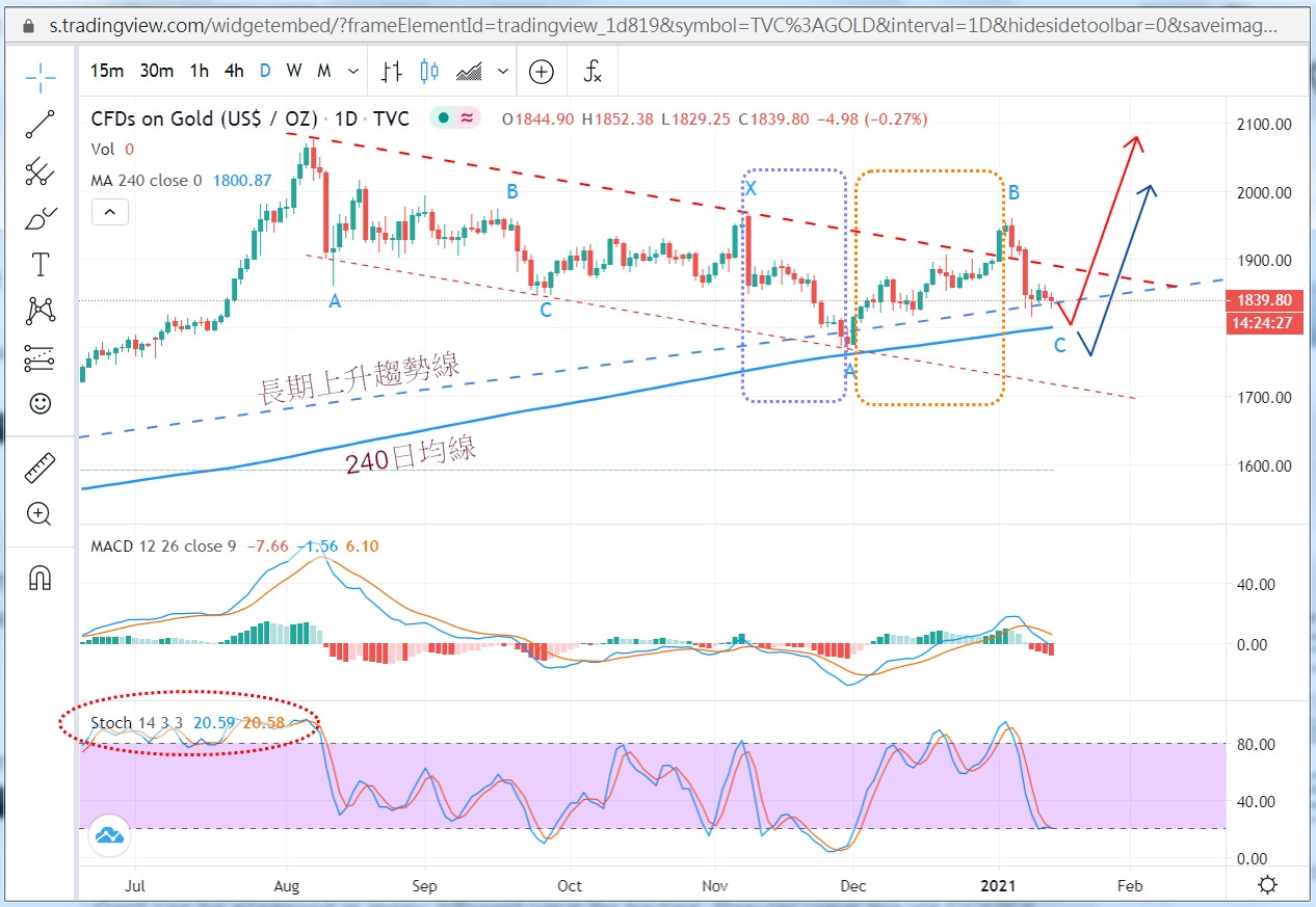 黃金上漲到圖上"小C"位置之後,