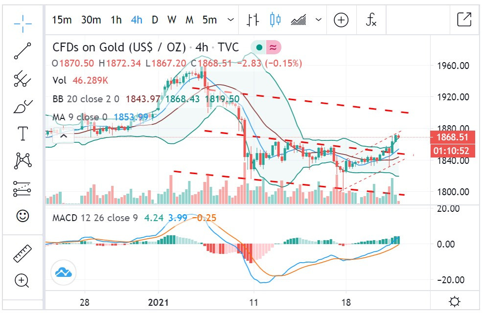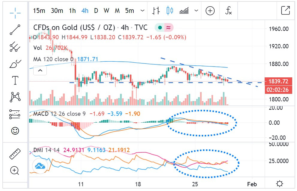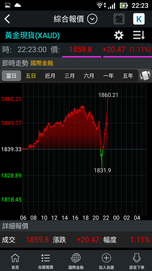 星期五白天,黃金有些許樂觀,以為會收在1848以上,