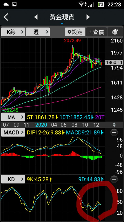 連帶使週KD在50附近交叉往下,