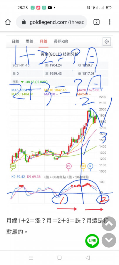 所以週線如果真的底部形成,那就月線就可以扭轉乾坤了……但是不要太樂觀,因為時事時勢已對黃金作頭已經很明顯了……至於2700是否……2300是否……先過2073再說吧!因為真的變了……