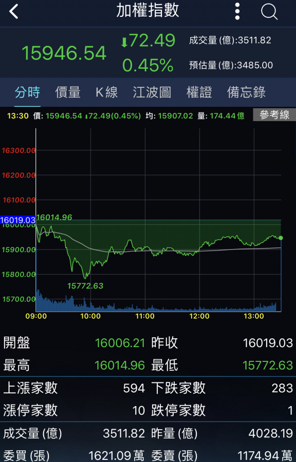 回覆 嗨爪主席:今天大盤拼拉回10線....15818...