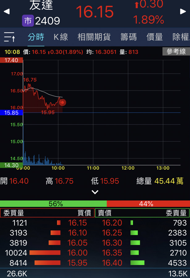 另從量能來看,本周以來已經有二天整體量能小於月均量,且短期均量也出線下彎,因此,在大盤已經強勢反彈超過0.618之上後,後續若無法補量,指數要繼續往上攻萬六的難度將大增。