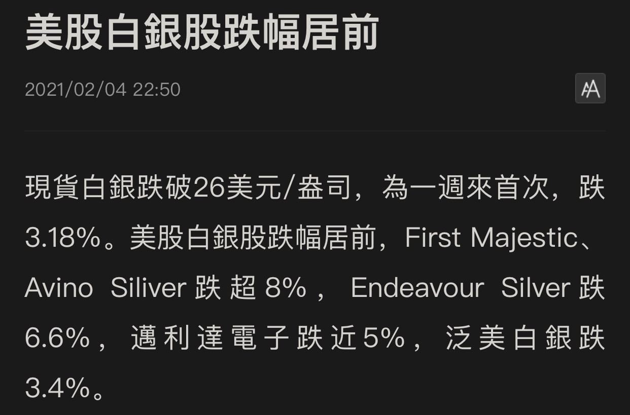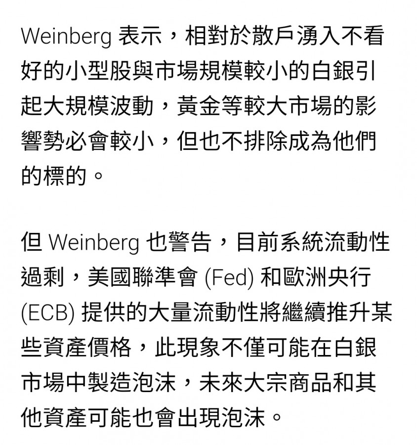 今早又看到報導說白銀事件似乎不是鄉民起義那麼簡單,好像是背後有有心人利用這個機會在炒,真相如何難以判定,但目前美國那邊改變遊戲規則拉高期貨保證金18%來應對。