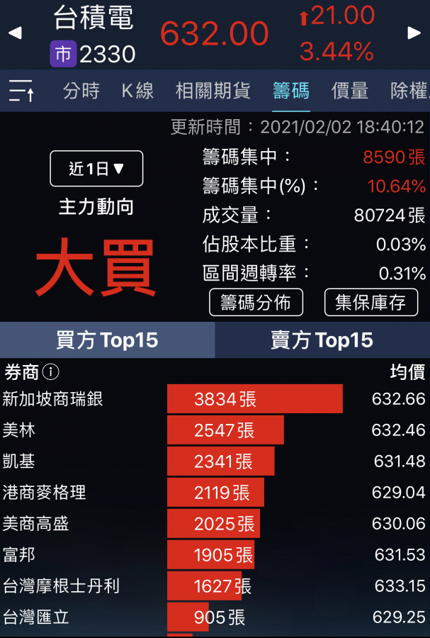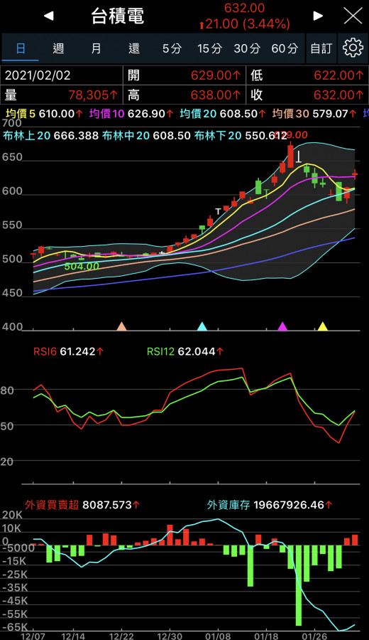 1.昨台股在台積電、聯發科雙神山領軍下,繼續大漲349點,外資在現貨市場和台指期都加碼多單,多頭氣勢明顯復甦‧不過,由於即將封關,市場氣氛相對保守,因此昨天的成交值僅3067億,略嫌不足‧2.美國股市在〝GameStop〞之亂結束後,市場恢復常軌,美股強彈兩天,除道瓊指數外,全都重回多頭格局,可望激勵今天台股繼續開出高盤,但須注意開高走低的可能‧