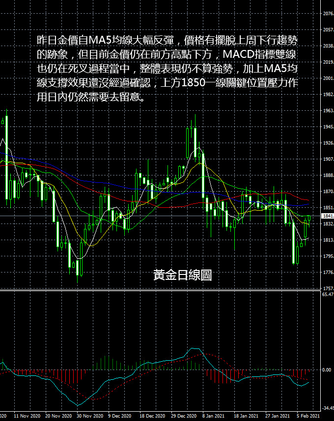 今天黃金價格,壓力1845