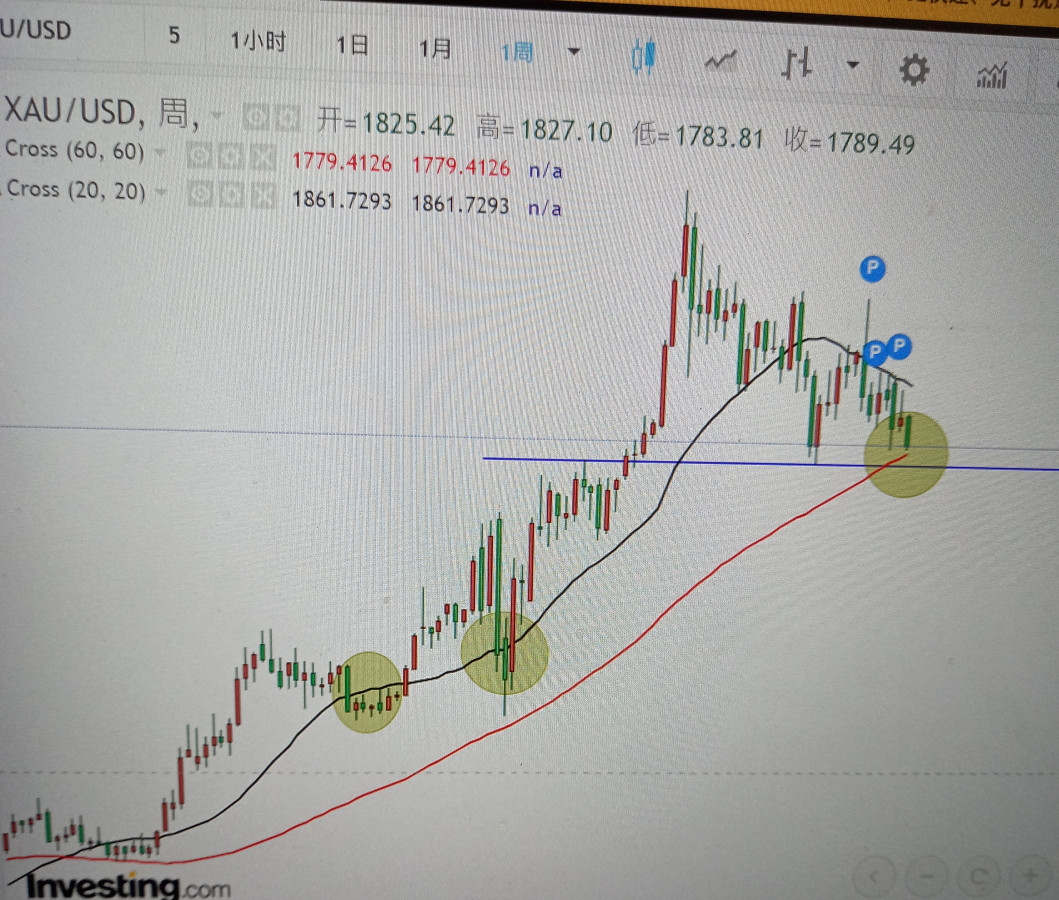 無心說過2020/07這根長紅K線,就是這次月線修正期盤整的範圍區,一旦跌破1764,也就是說2020/07這根長紅K是必被跌破,那金價就會直接下跌跌破20月均線,這將會引發恐慌性殺盤,更糟糕的是破壞了「週線強勢的多頭格局」,那麼歷史性的「山頭支撐區」將再次形成「極大壓力」,那就格位就真的要小心了……