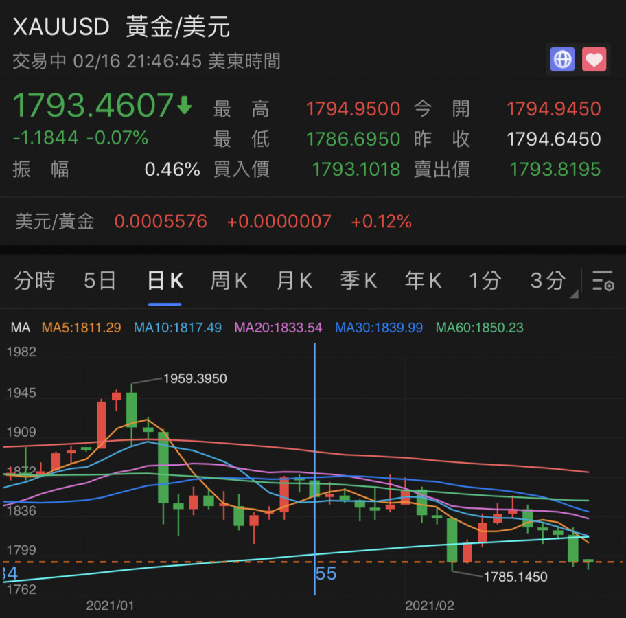 回覆 酷瑪:過年期間 國外股市一直漲。今天黃金價 慘...