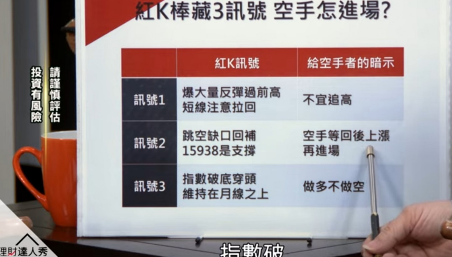 3.若電子股回檔走弱,則金融股和傳產股須接棒撐盤,方能避免加權指數收中長黑