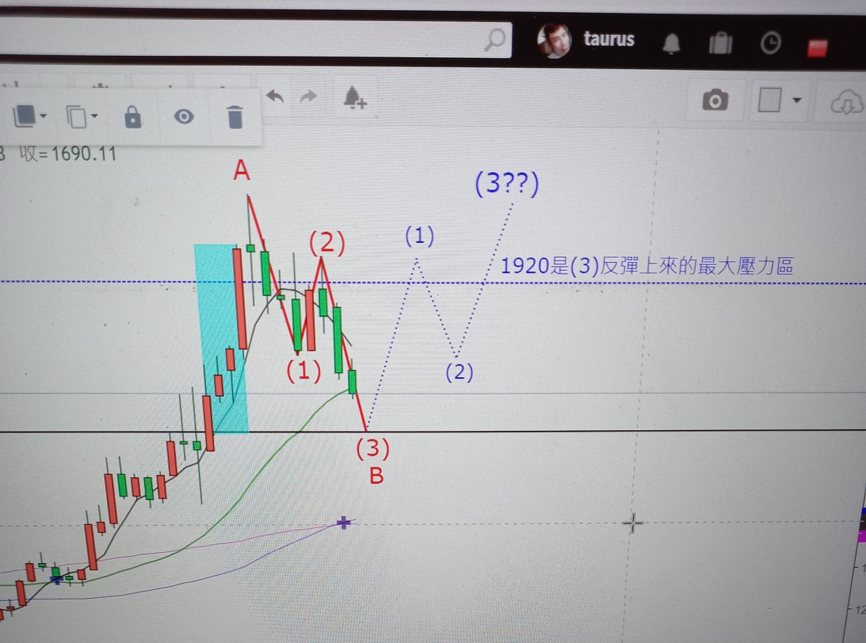 回覆 無心:上圖一,是以三段式下跌下圖二,是以五段式...