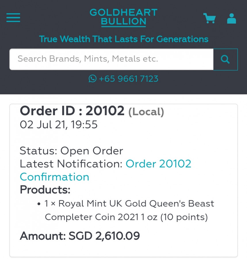 皇家籌幣厰Queen's Beasts主題的金幣會比其他金幣來的貴些 因為premium比較高 不過給收藏/喜歡的人 那應該不是問題