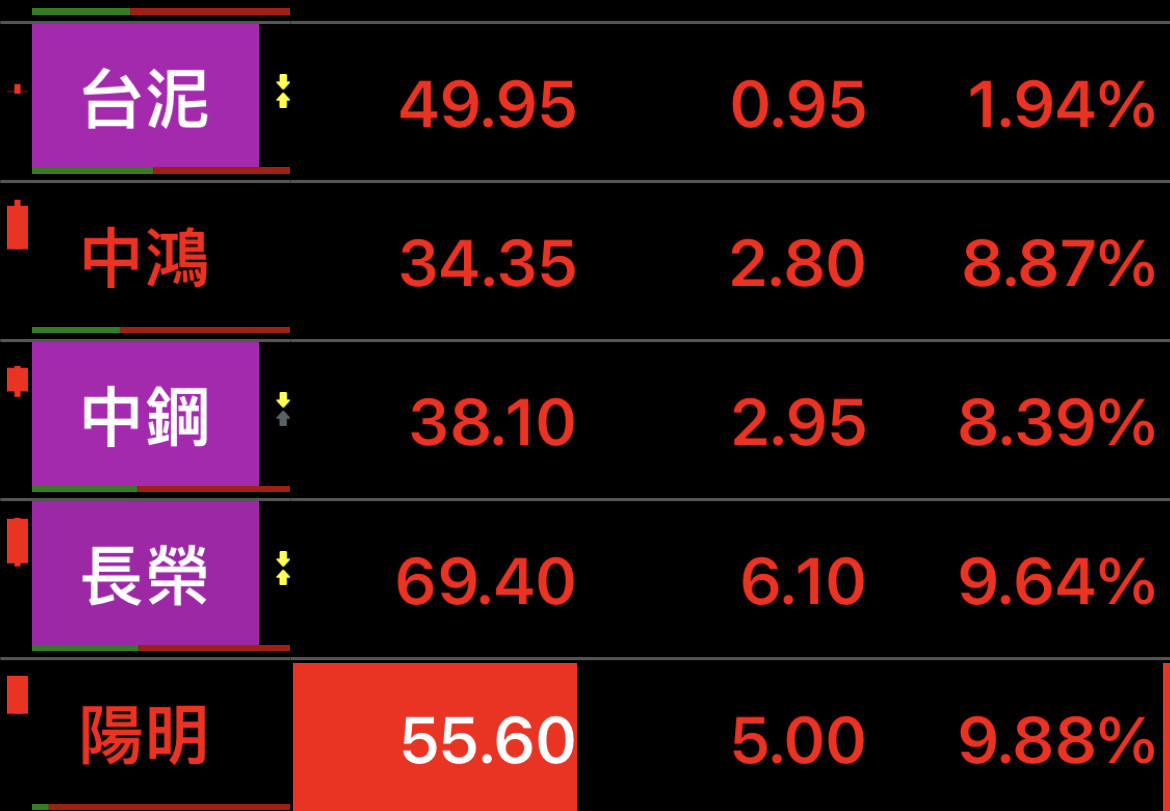 陽明不好買,只能死抱不放,今日改追國喬,目前漲幅6趴多,也是不賴😋