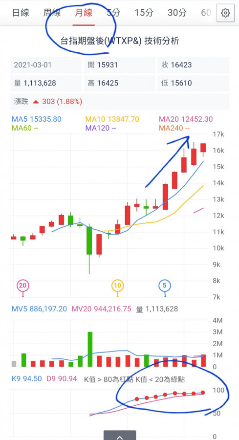 你注意看是否像極了2020/03月以後的走法呢?你是否注意看到每根月K線離5月均線很遠呢?
