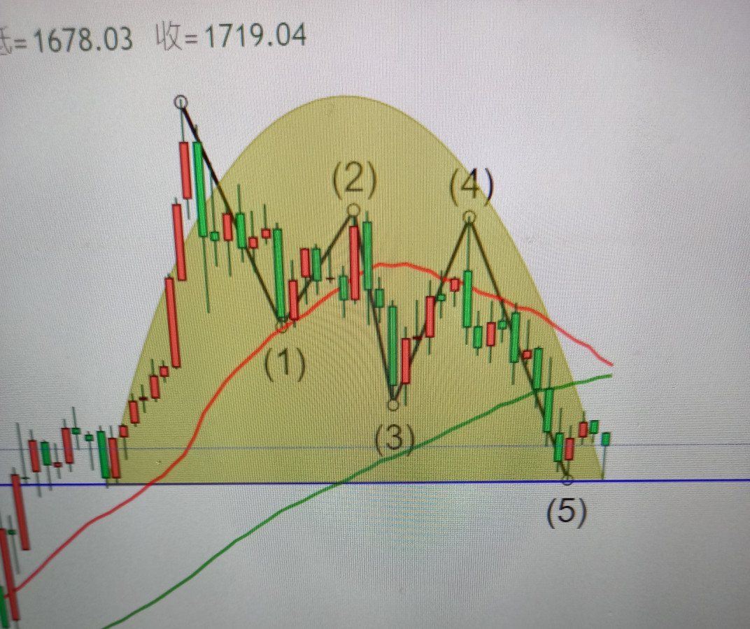 從上圖中可以看出,自1676上漲路徑判斷應該是以三段式走法也就是……