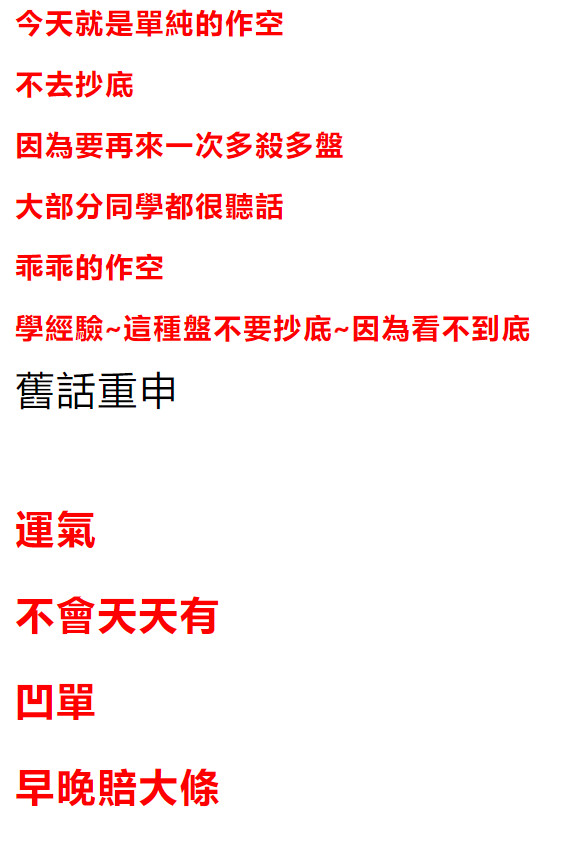 4.今天應該依舊是個股表現的震盪走勢,都下雨了,就繼續收紅吧‧