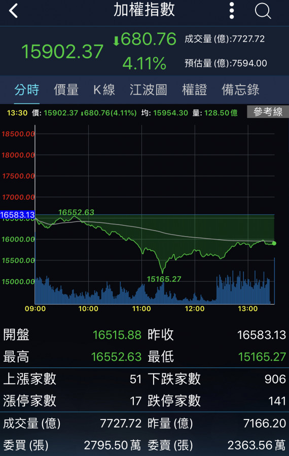 跌點之大是沒看過啦,成交值之大也沒看過,