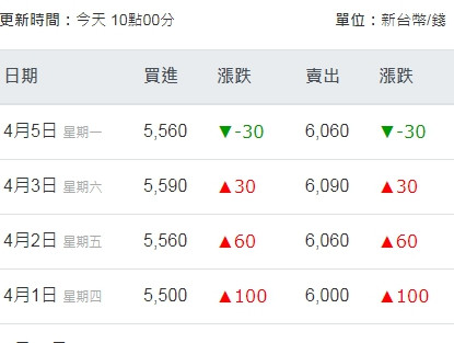 今日金價賣出是6060金價買入是5560你賣給銀樓會以買入回收價也不會貼工錢給你