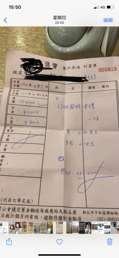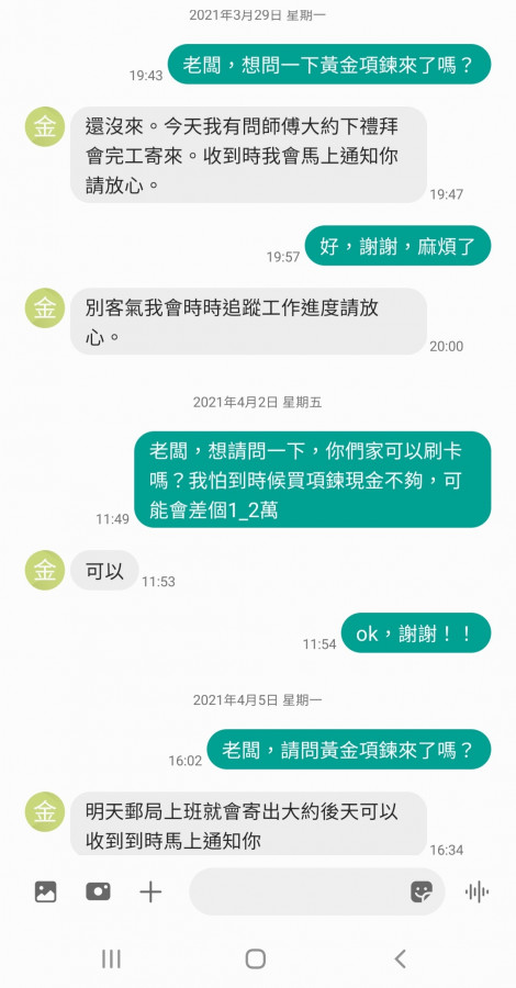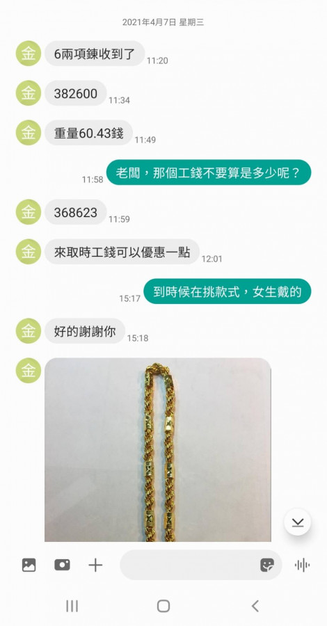 回覆 恐龍:不知道6兩黃金項鍊製作多久才會好,也不知...