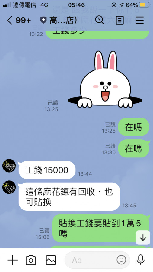 被個大嬸激到了!今天可以面交!等我17:00下班 可以來高雄嗎!私Line 約看哪間銀樓 保單我回家拿
