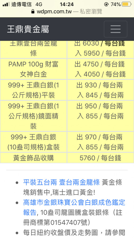 回覆 家庭主婦:我說的是此網站上國際黃金價格一般銀樓正常...