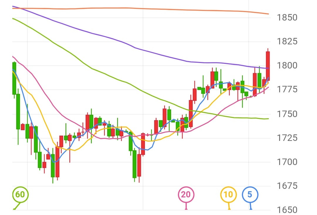 他最起碼說1747買進,有買的都賺不是嗎?更不要說他多次說1740~1730進買進,我買了,所以我賺了。請問你敢喊價格多少進嗎?至於會不會漲到1858我們視目以待。我先說吧,就移動平均線來說,有機會。