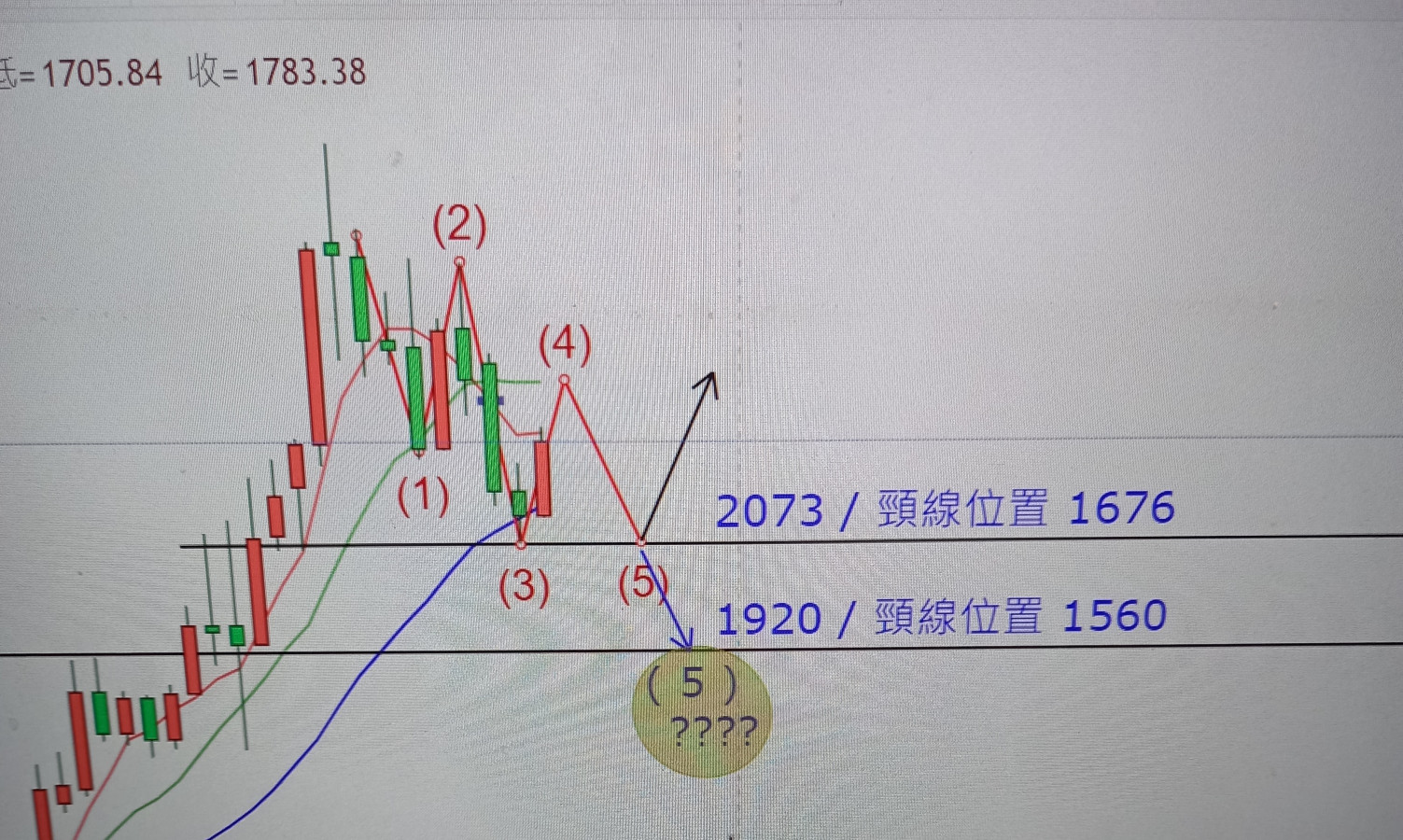 假設你持有多頭倉位(進場價位漂亮例如 1700 ),或是先前套在更高位置(例如 1850或是更高),那麼完全可以不用擔心,最後還有一波真正逃命機會快速上升的B3(c),還沒有到來....