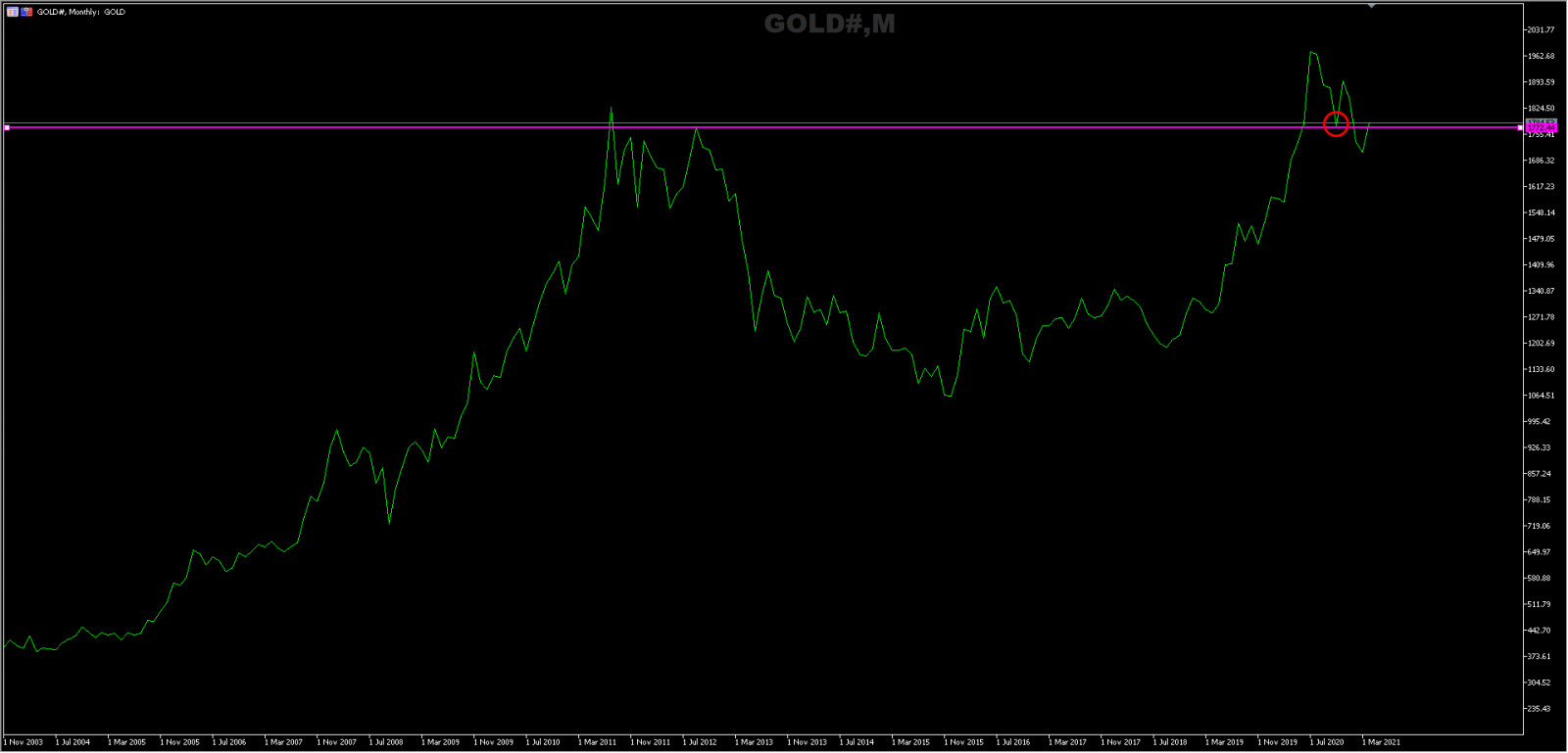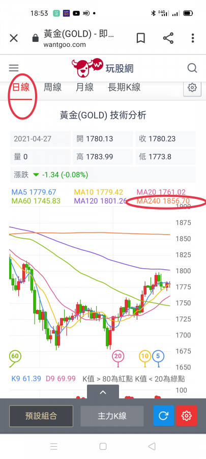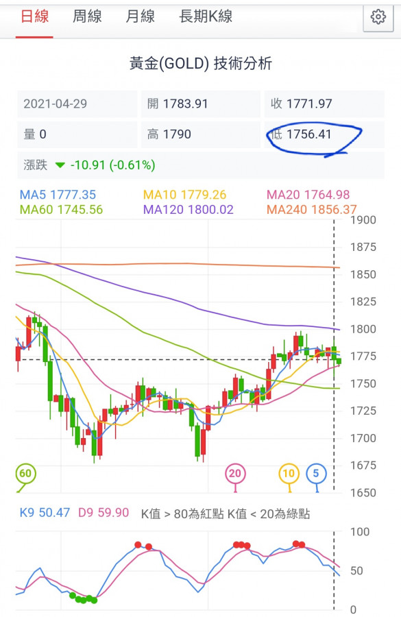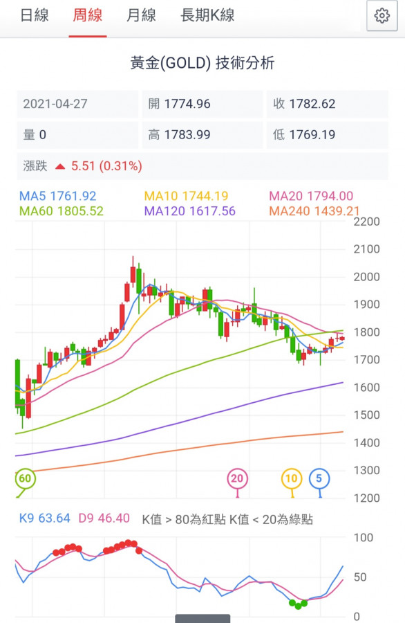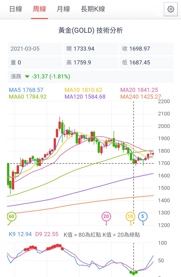 回覆 無心:這是黃金月線圖無心說過,黃金漲跌是反應股...