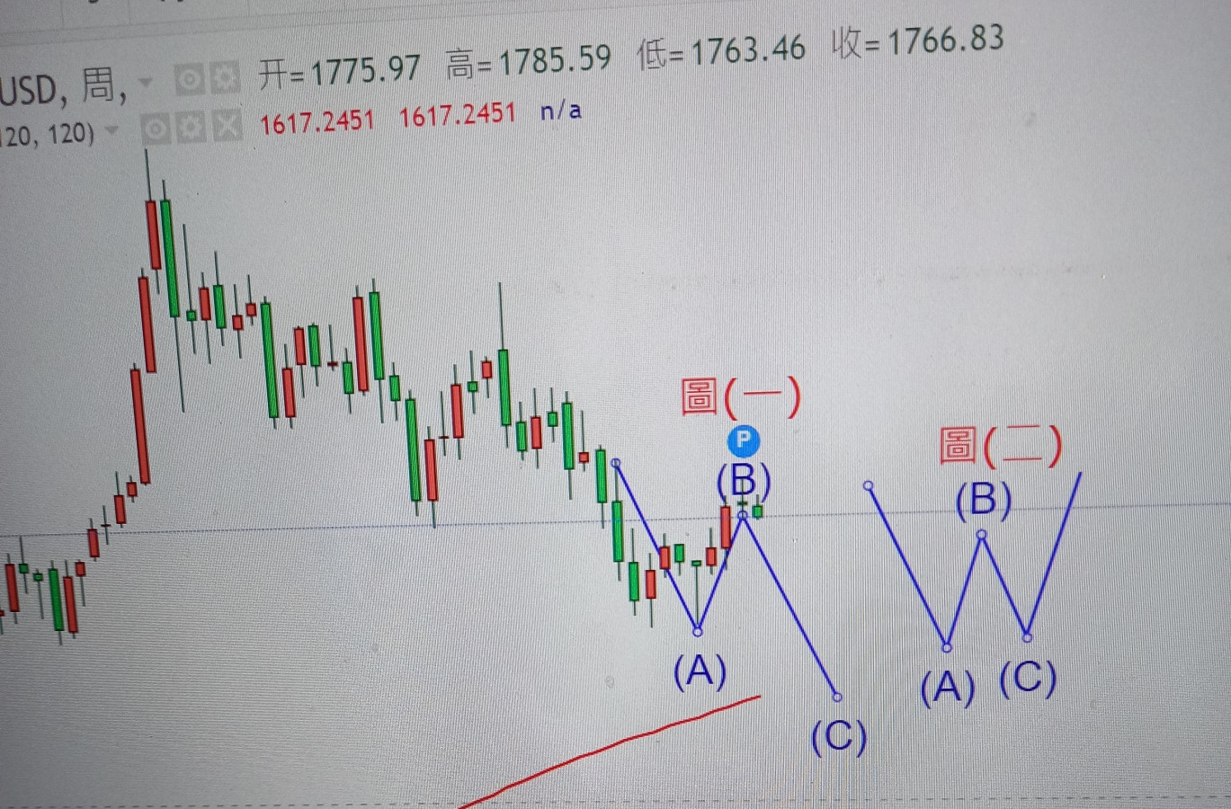 先前說過目前走的是大週期B浪,而B浪一般會分成 1 2 3(或 a b c) 3波結構,