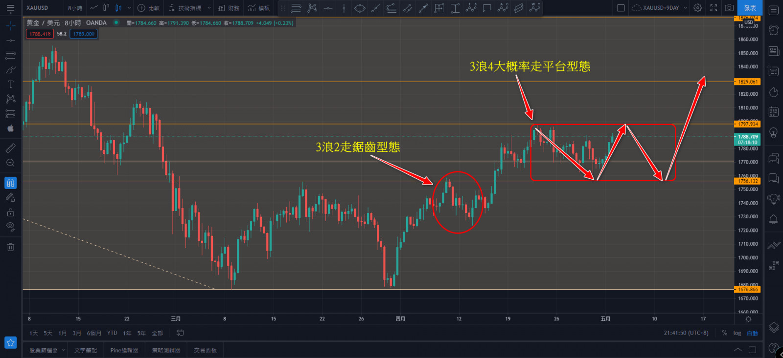 1.4浪回落3浪已達50%,且未低於1浪頂點